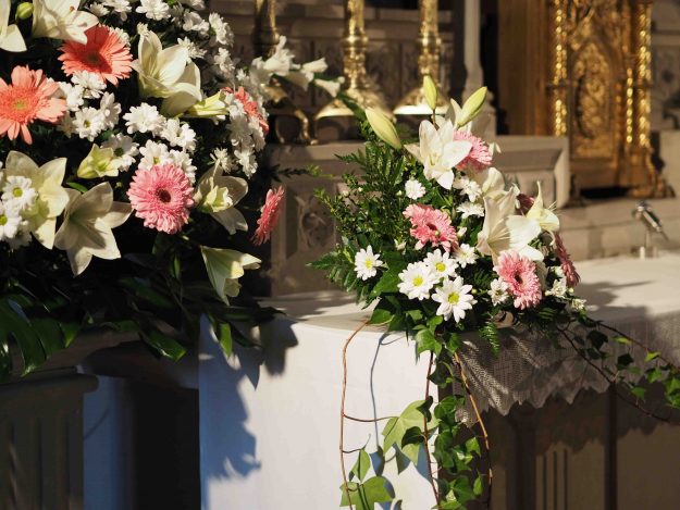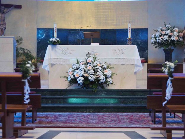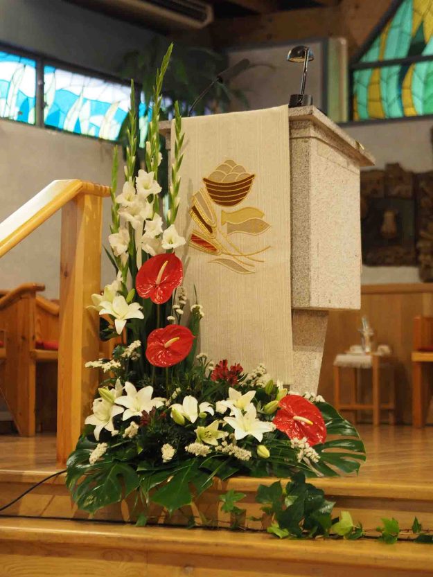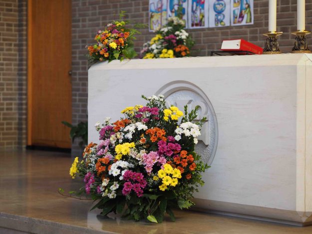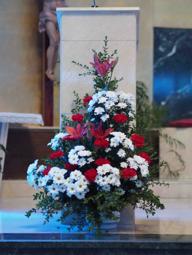 Decoración floral para la retransmisión de Misa en el programa “El Día del Señor” de RTVE. http://www.rtve.es/alacarta/videos/dia-del-senor/dia-del-senor-parroquia-santa-del-cervellon/4000527/